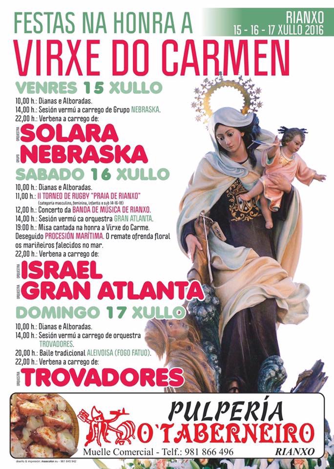 Do 15 ao 17 de xullo celébranse en Rianxo as Festas na honra á virxe do Carme, organizadas pola comisión de festas "Virxe do carme".