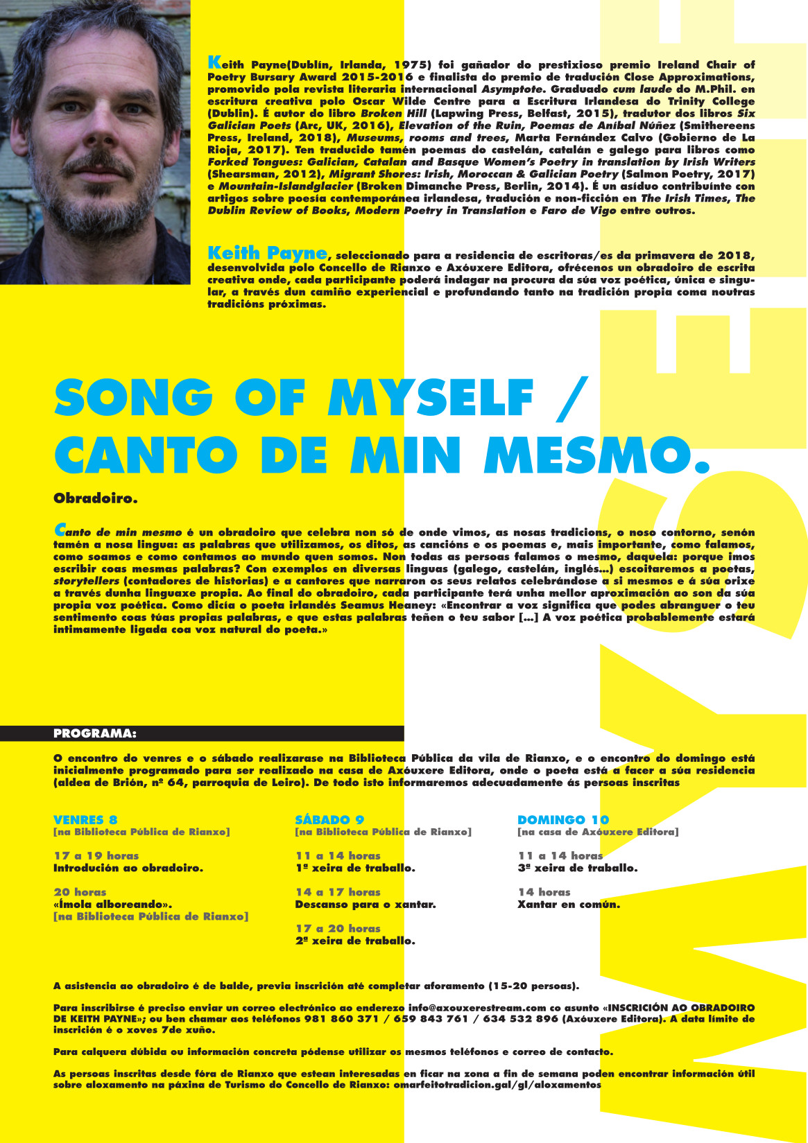 - Obradoiro de escrita "Song of myself / Canto de min mesmo" - Concello de Rianxo