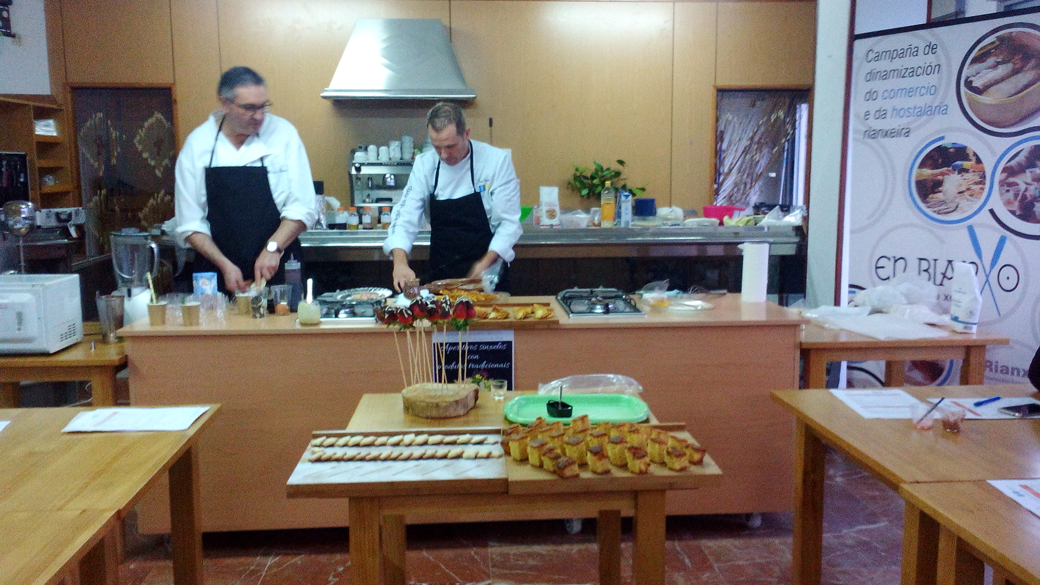 Nesta actividade formativa, que se desenvolveu no antigo Liceo marítimo rianxeiro, participaron 10 establecementos: Mesón Don Pancho, cervexería Gallaecia, Parrillada Ourense, Panadería Braisa, bar Atalaia, bar Abuín, mesón O Vilar, Pizzería Toskana, Camping Rianxo, Bocatería Guggenheim e cafetería Gallaecia. Foi impartida por dous cociñeiros e profesores no CIFP Carlos Oroza de Pontevedra: Carlos Rodríguez e Daniel Pulzoni, que transmitiron a súa experiencia, oficio e algúns segredos de cociña para facer máis apetecibles os petiscos.
