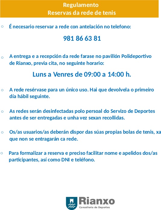 - Reserva de redes de tenis: procedemento, instalacións e recomendacións - Concello de Rianxo