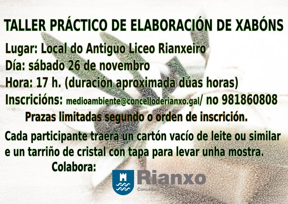 O vindeiro sábado 26 de novembro, no local do Antiguo Liceo Rianxeiro, celebrarase un obradoiro de elaboración de xabóns.