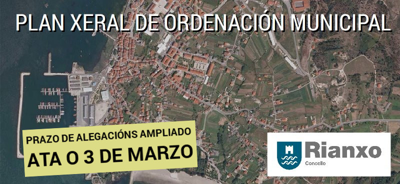O grupo de goberno presentará o xoves 29 de xaneiro no Pleno Municipal a ampliación do prazo de exposición pública do PXOM de Rianxo, que se aumentará, de aprobarse, até o 3 de marzo.