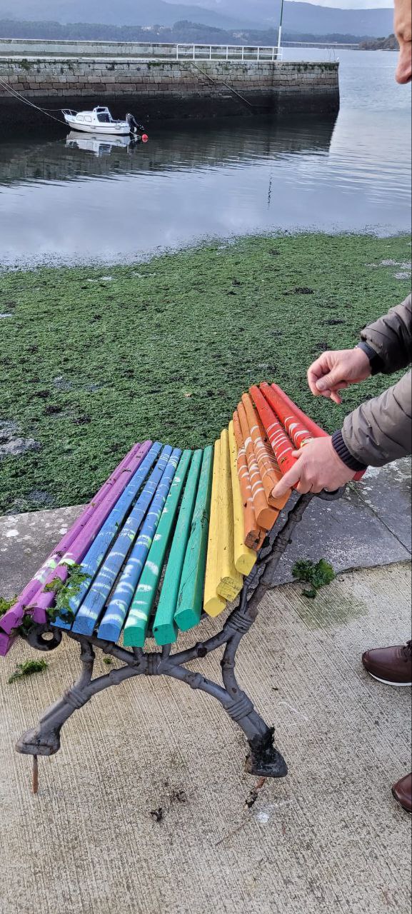 Evidentemente, mentres a Policia Local buscará dar cos culpábeis de mover e guindar ao mar o banco, a brigada de obras repoñerao e non só iso, senón que ten a encomenda de realizar máis repintados similares nos bancos ubicados na zona, pois de ningunha maneira se vai permitir gañen os intolerantes e homófobos esta loita contra o respecto.