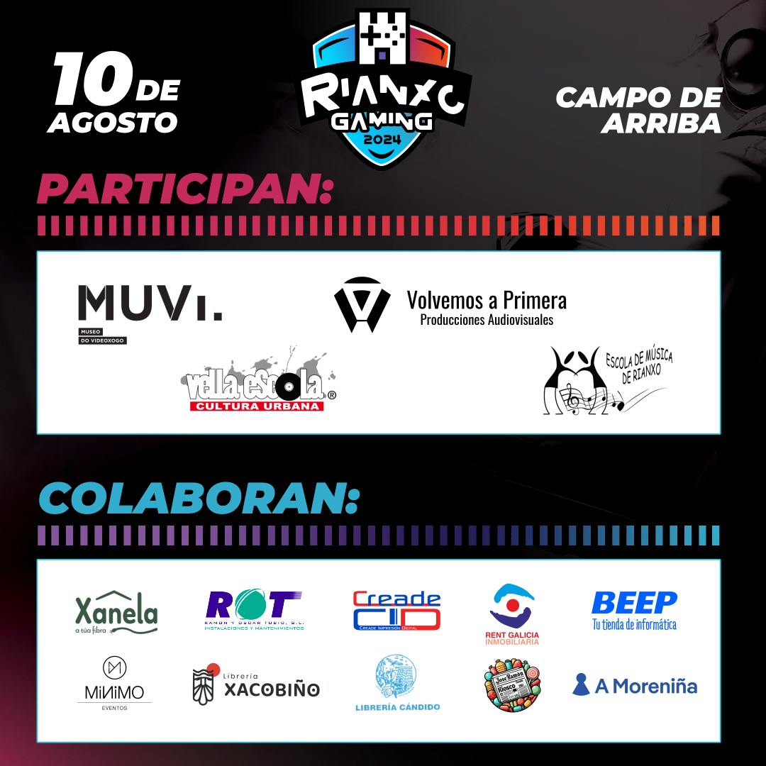 No evento participan o Museo do Videoxogo, A Vella Escola Cultura Urbana, a Escola de Música de Rianxo, e no apartado audiovisual coa realización de Volvemos a Primera Producciones .
