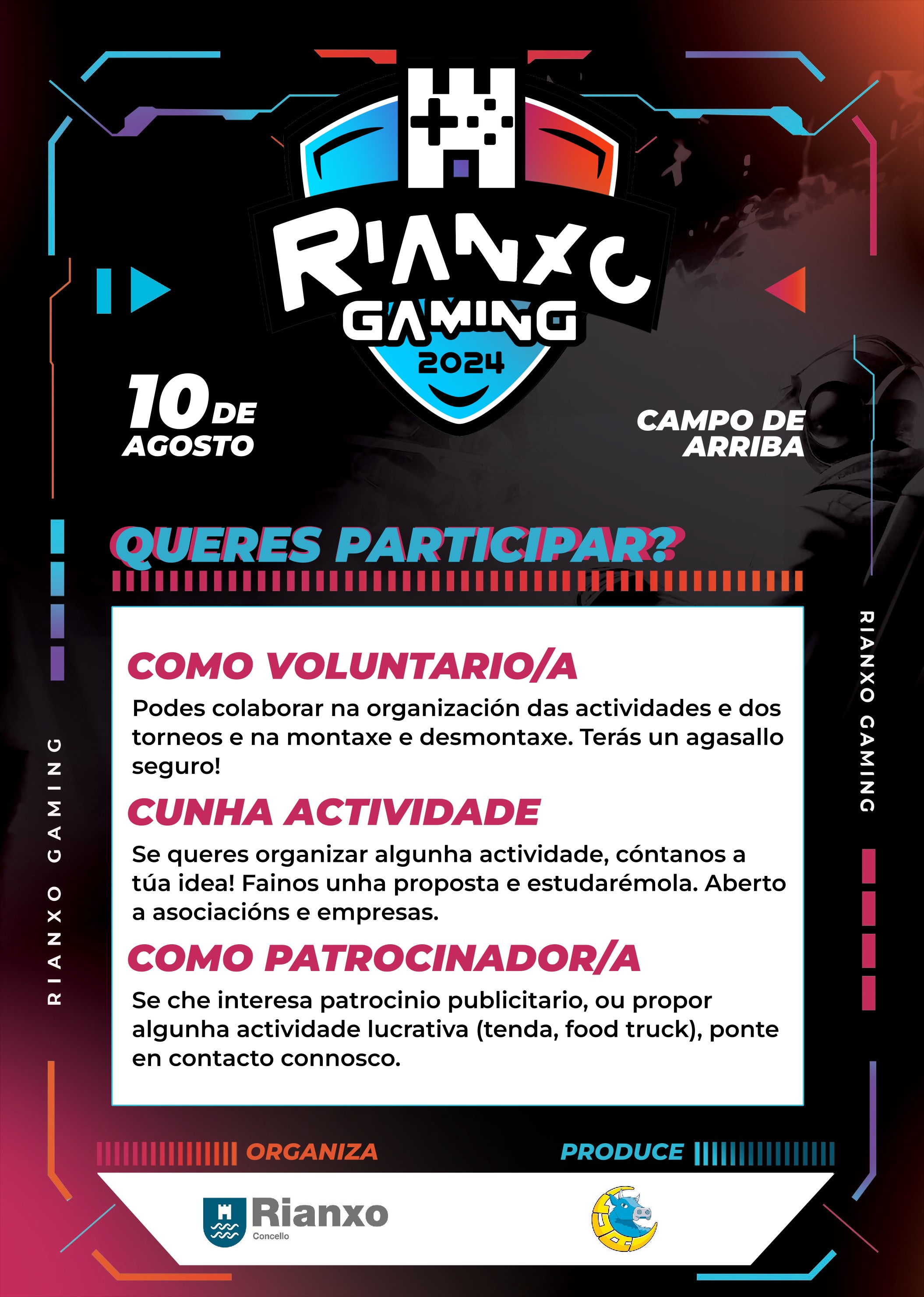 Se queres participar como voluntaria/o, escríbemos no Instagram @rianxogaming ou por correo a gamingrianxo@gmail.com