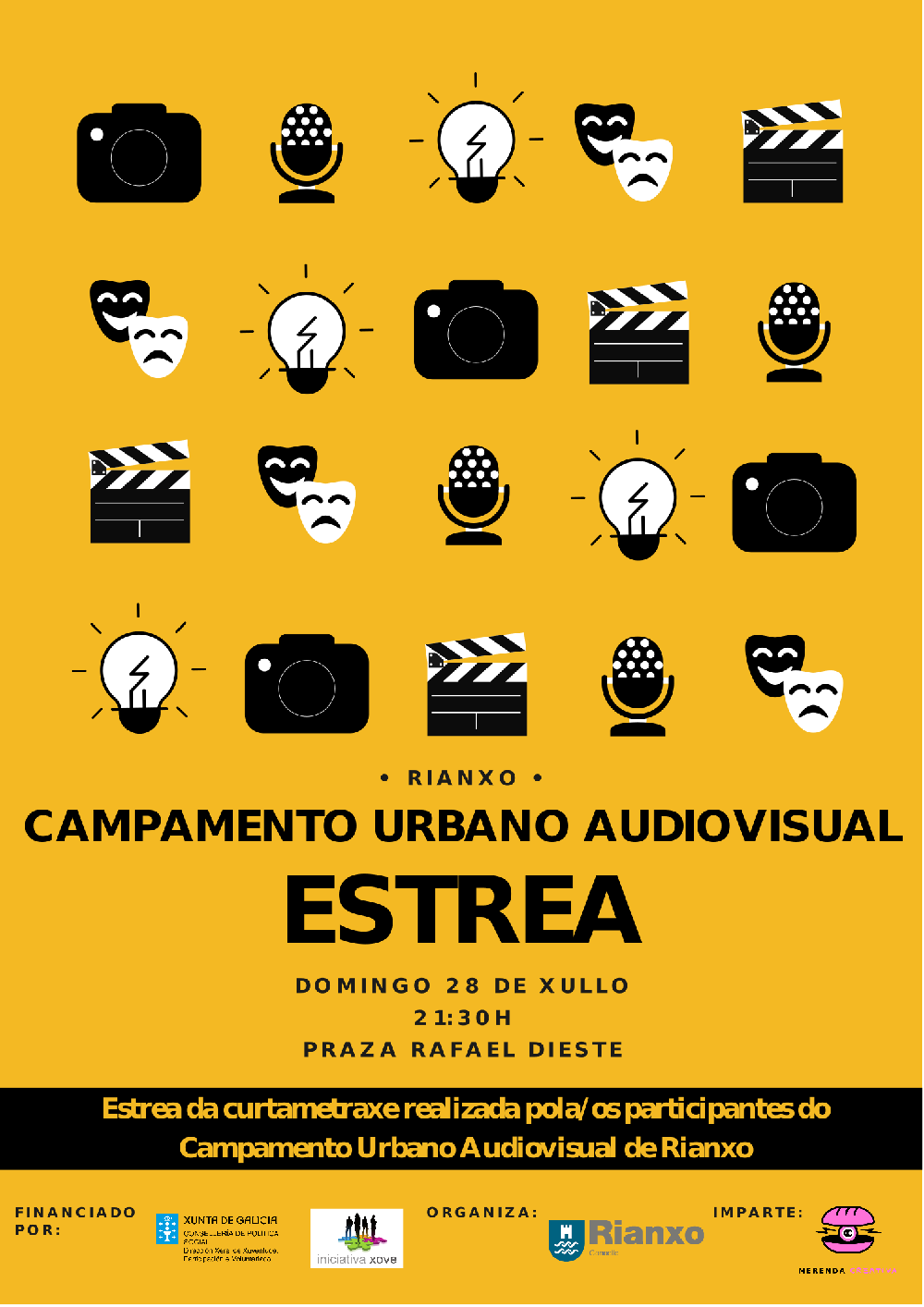 O vindeiro domingo 28 de xullo, ás 21:30 horas, estrearemos na Praza Rafael Dieste a curtametraxe realizada polos mozos e mozas participantes no Campamento Urbano Audiovisual. Non a perdas!!!