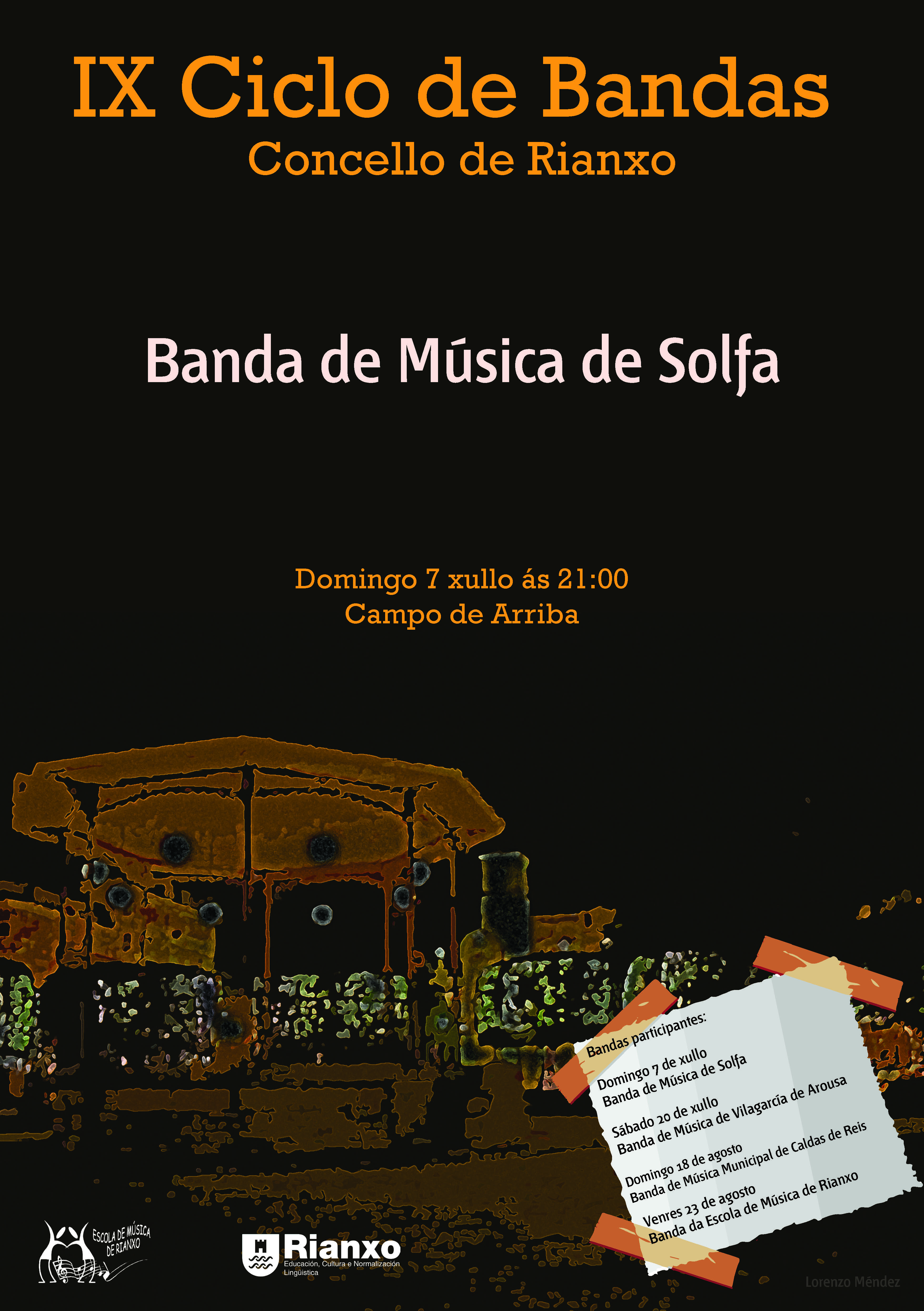 O domingo 7 de xullo, ás 21:00 horas, no Campo de Arriba, dará comezo o IX Ciclo de Banda "Concello de Rianxo", co concerto da Banda de Música de Solfa.